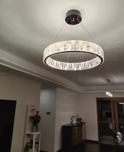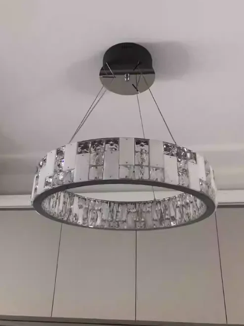 Its dazzling crystal embellishments reflect light beautifully, creating a warm and opulent ambiance.