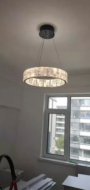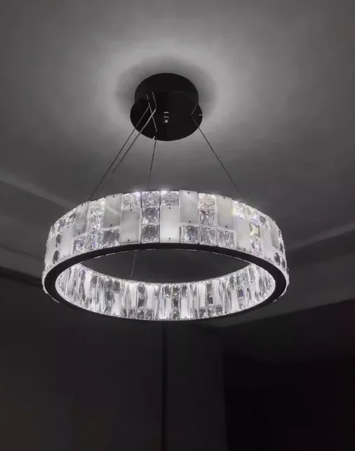 Crafted from premium stainless steel, exquisite marble, and shimmering crystal, this statement lighting piece radiates sophistication.