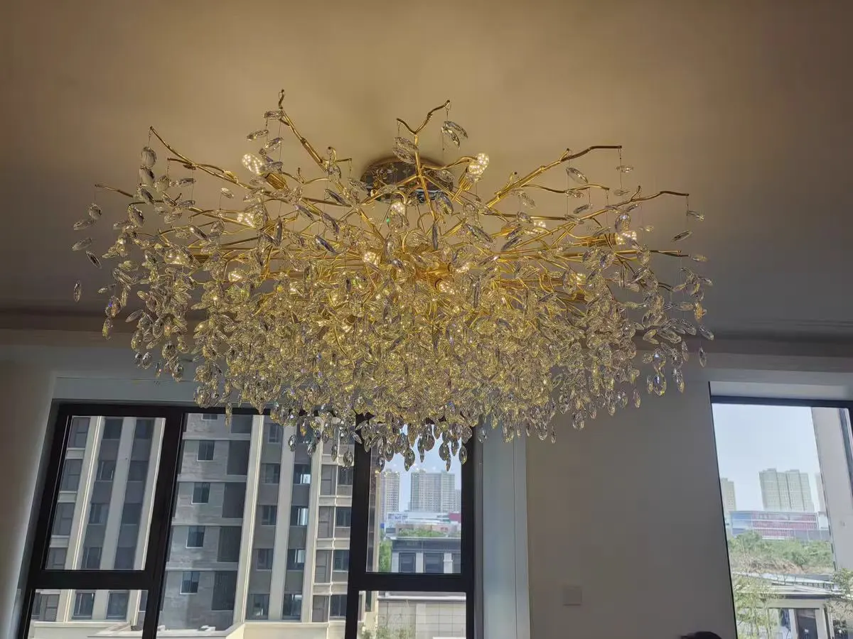 Our CALISTE Chandelier is a breathtaking masterpiece of luxury and artistry, crafted from sparkling crystal and golden aluminum branches.