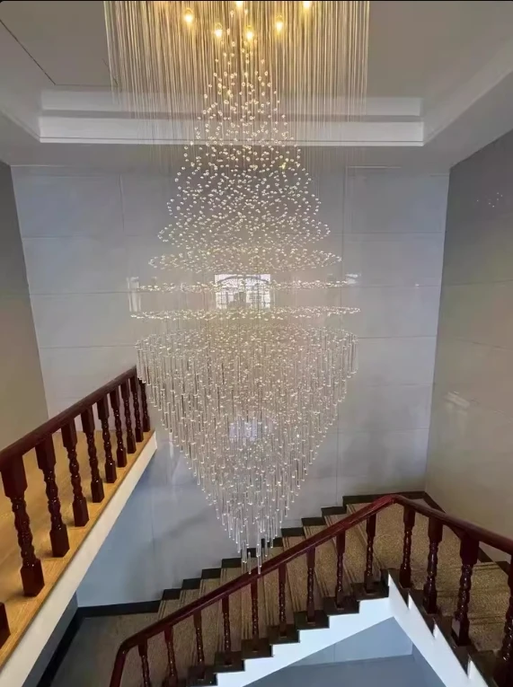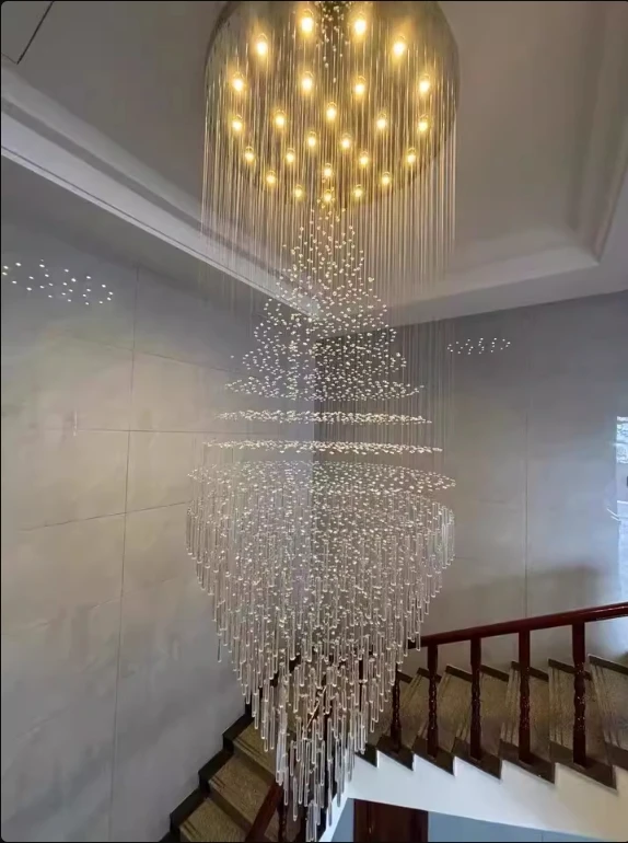 Perfect for high ceilings, the LENKA chandelier elevates any room into a modern display of grandeur.