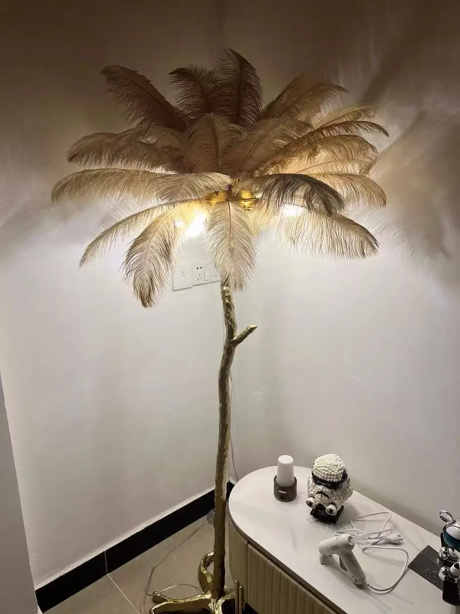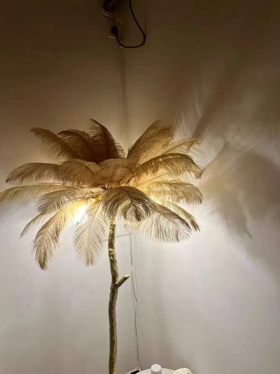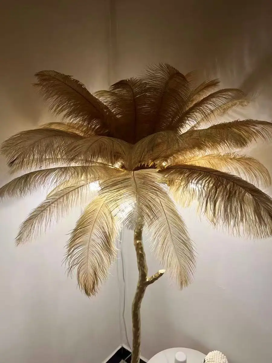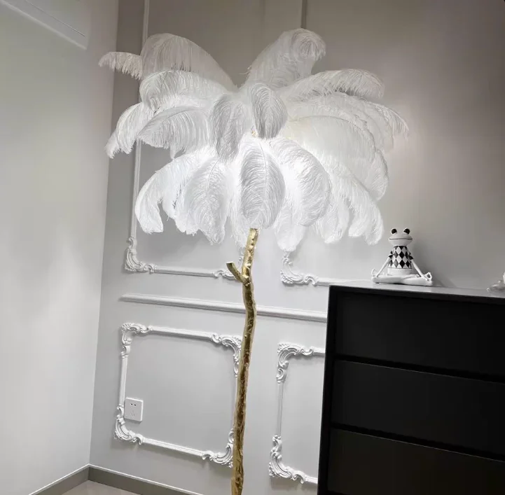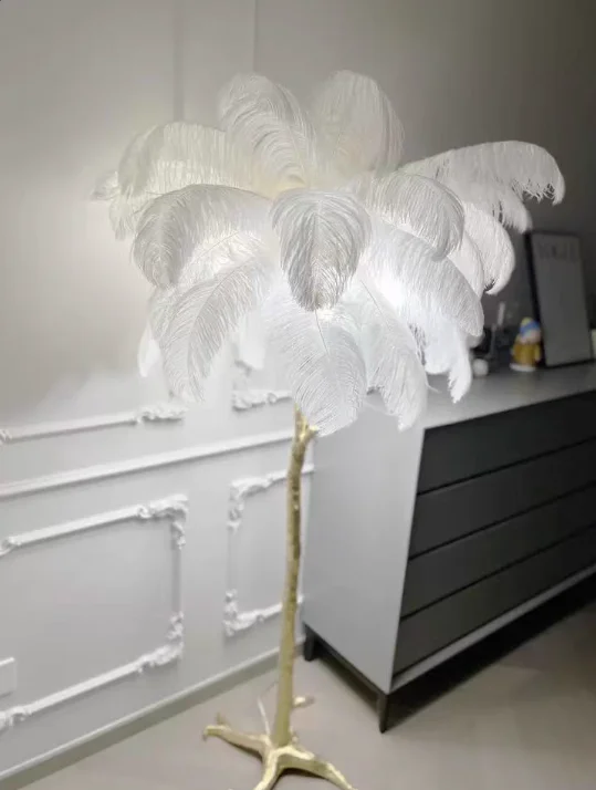 Our floor lamp include(s) a striking arrangement of real ostrich feathers, creating a soft, delicate texture that enhances any room's visual appeal.