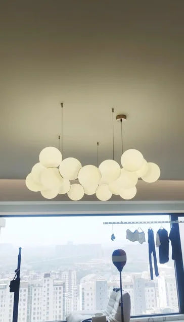 Inspired by the beauty of cumulus clouds and white balloons, its white tufts create a unique lighting game.