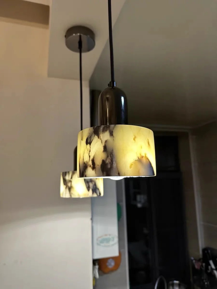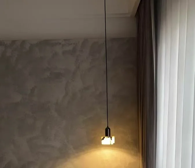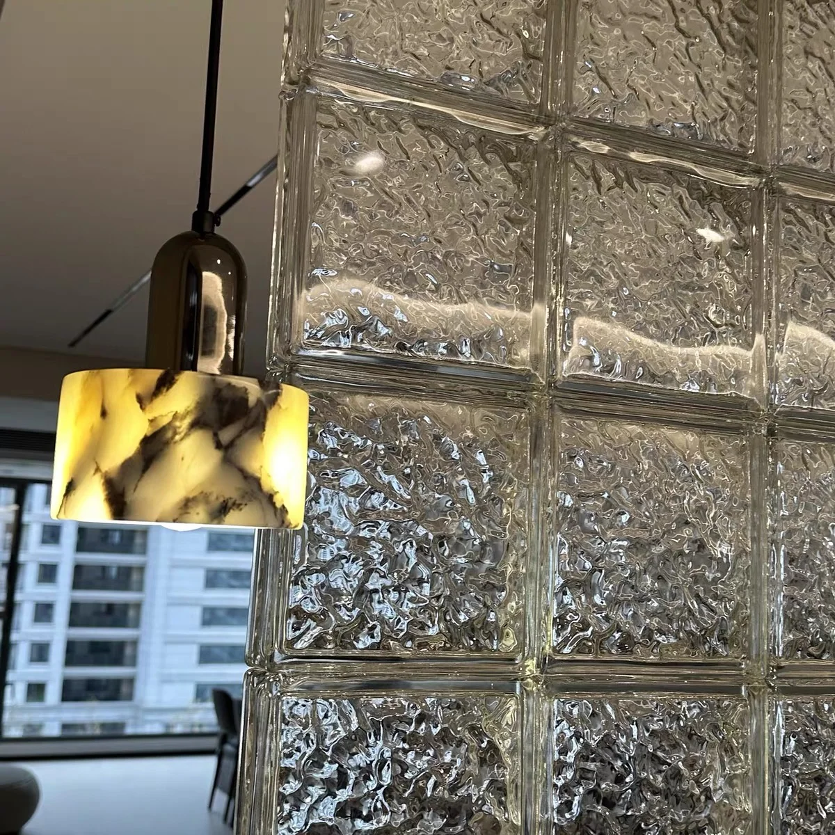 The OLGA Pendant Light seamlessly blends modern design with organic beauty, featuring a cylindrical natural stone shade that exudes warmth and sophistication.