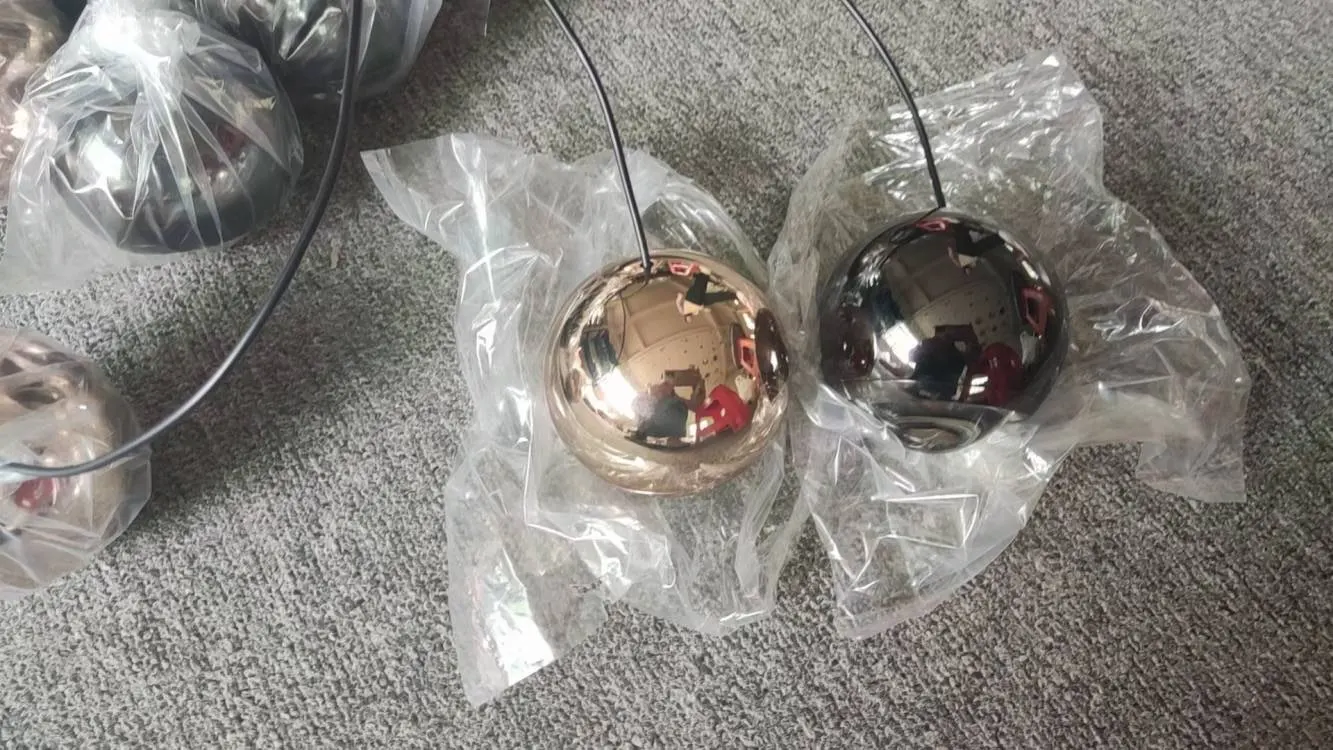 Featuring a series of sleek, spherical pendants suspended at varying heights, this modern fixture adds depth and drama to any room.