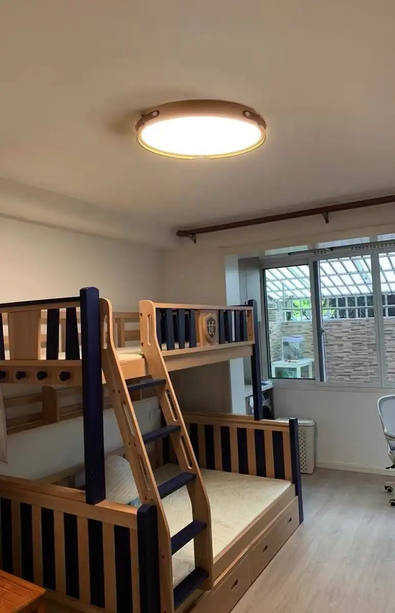 Available in rich Walnut and light Pine finishes, this ceiling light features a unique wooden frame design that adds warmth and character to any room.